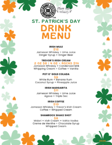 Our bar team is pouring a special St. Patrick’s lineup including:
